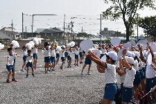 (9月15日) 「フレー!フレー!赤組!」 「ガンバレー!ガンバレー!白組!」 運動会練習が本格的に始まり、第1回目の全体練習が行われました。 今回は『応援(エールの交換)』と全校競技である『大玉転がし』の練習をしました。 一つ一つ動きを確認しながら、暑い中でしたが真剣に子どもたちは取り組んでいました。 |