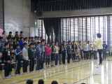 大会に向けて毎日練習に励むミニバス部を励ます為に、全校で応援をしました。