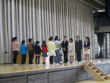 練習の成果を発揮して、体育館いっぱいに校歌を響かせました。