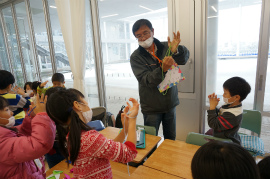 けん玉や竹馬、めんこなどの遊びを通じて日本の文化に触れました。