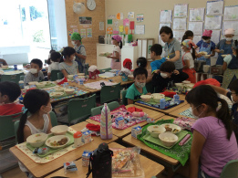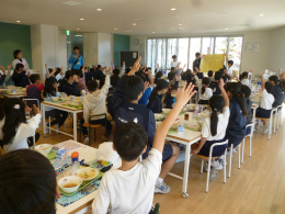 一緒に給食を食べたり、クイズや歌を楽しんだりしました。