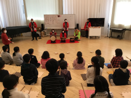 太鼓を叩いたり、お面をつけて踊ったりして楽しみながら活動しました。
