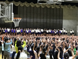 選手紹介ビデオの上映や、応援団による応援がありました。
