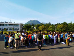 出発式の様子です。日光東照宮を見学し、神橋から東武日光駅までのグループ活動になります。