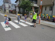 通学路では、地域の方が車の交通整理を行っていたり、子ども達にあいさつの声をかけてくれます。